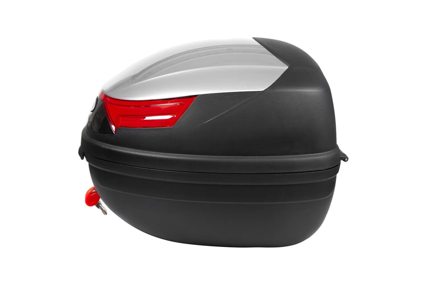 Kufer posiada elementy odblaskowe poprawiające widoczność.