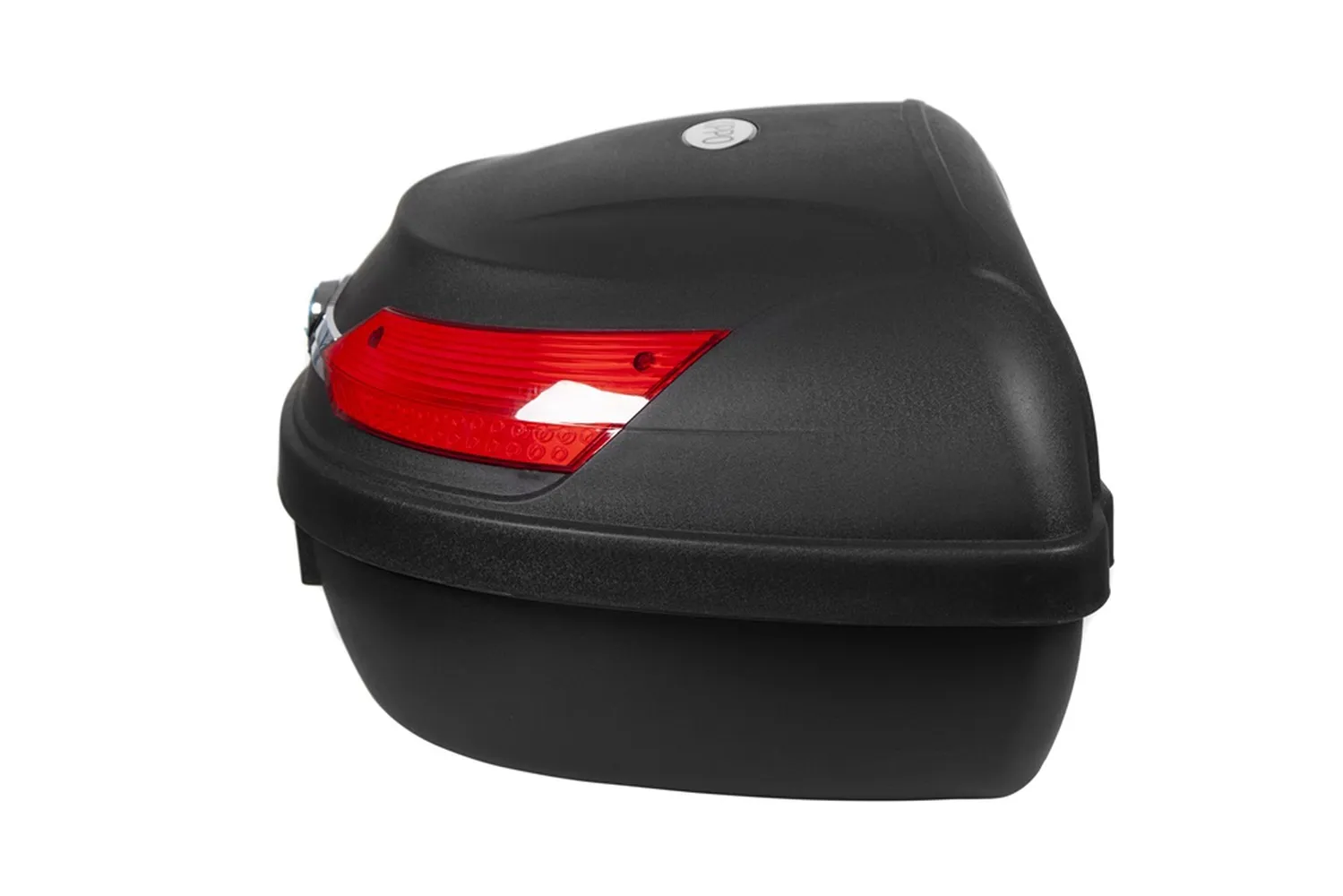 Kufer posiada elementy odblaskowe poprawiające widoczność.